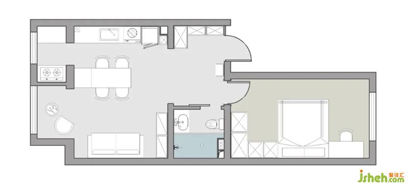 本案例是位于北京昌平區(qū)套內(nèi)面積為42.53平米,原始戶型是一個沒有客餐廳的兩居室。