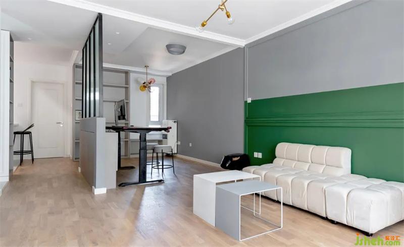 4.犧牲一間臥室改造出來的工作區(qū),完全開放,長虹玻璃完美的隔絕了室外的視線,起到一定的屏障作用。
