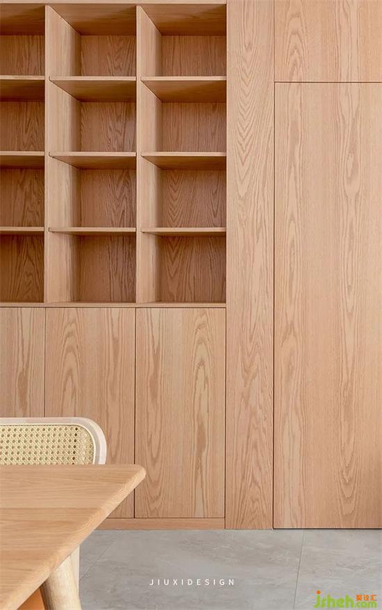 書(shū)柜和隱形門(mén)細(xì)節(jié)圖,基本維持在同一個(gè)平面,讓空間更加完整。