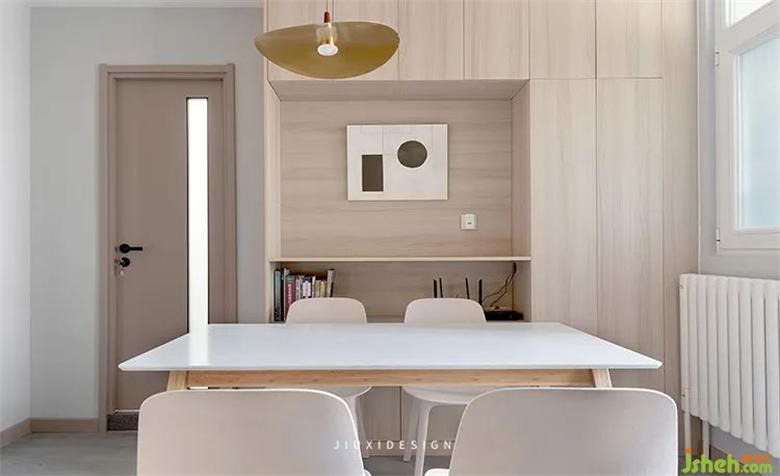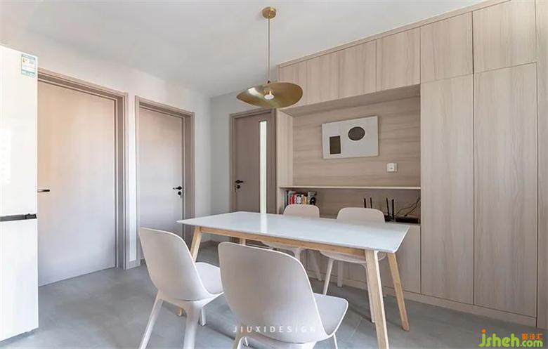 淺木色+純白讓餐廳看起來完整統(tǒng)一,沒有做多余的裝飾和擺設(shè),純粹到讓每一平米都是情調(diào)。