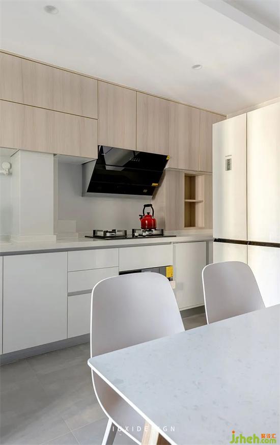 整個(gè)空間保留了寬敞的活動(dòng)區(qū)域,無論流動(dòng)動(dòng)線,桌前坐人,還是在廚房頻繁操作,都不影響受到絲毫阻礙。