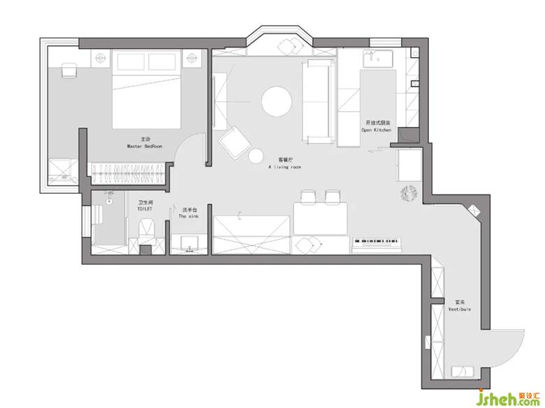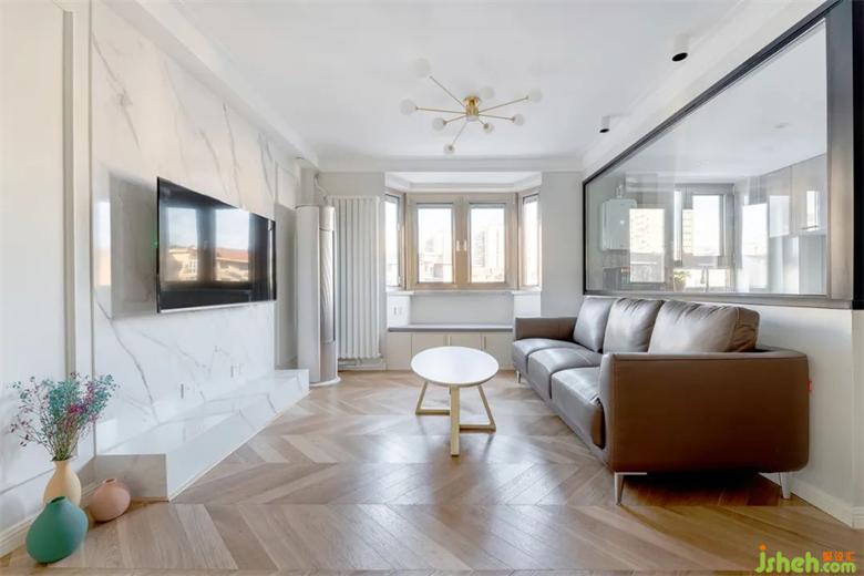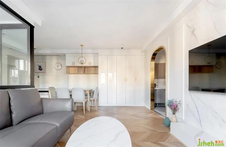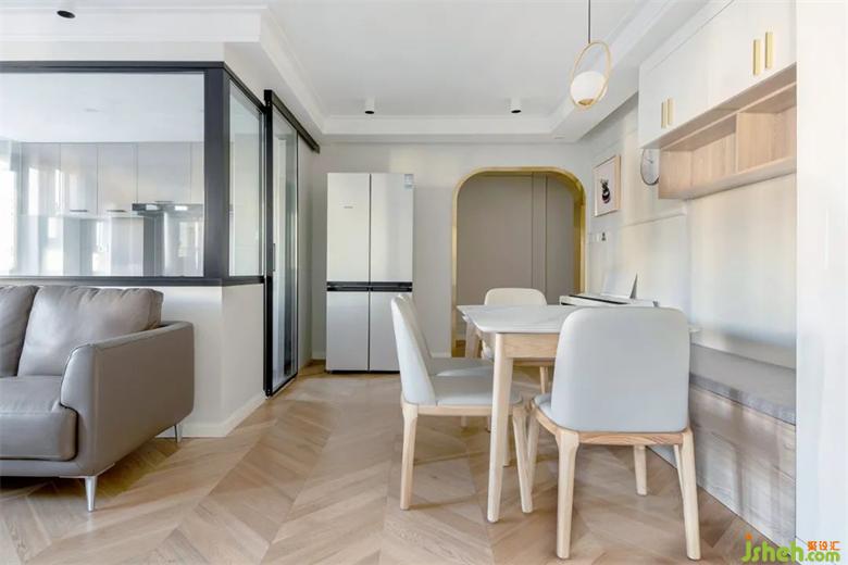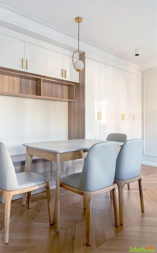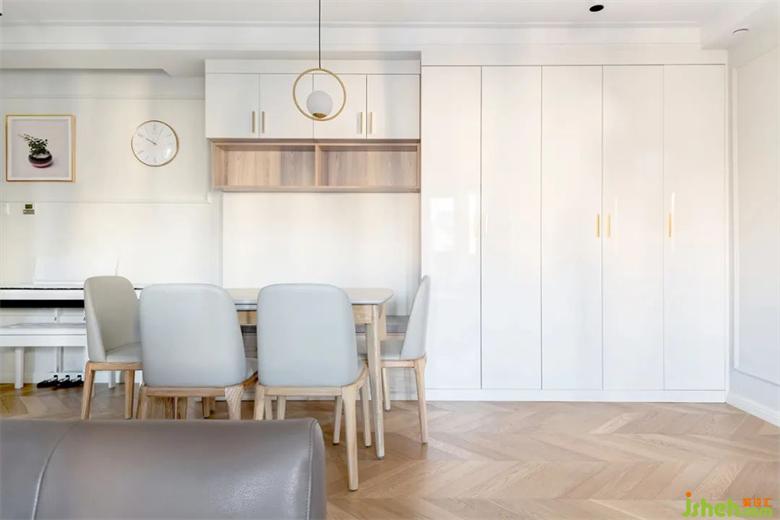 白色柜體遇上木色家居會(huì)溫馨很多,搭配原木魚骨拼的地板,簡(jiǎn)單中含有一些變化。