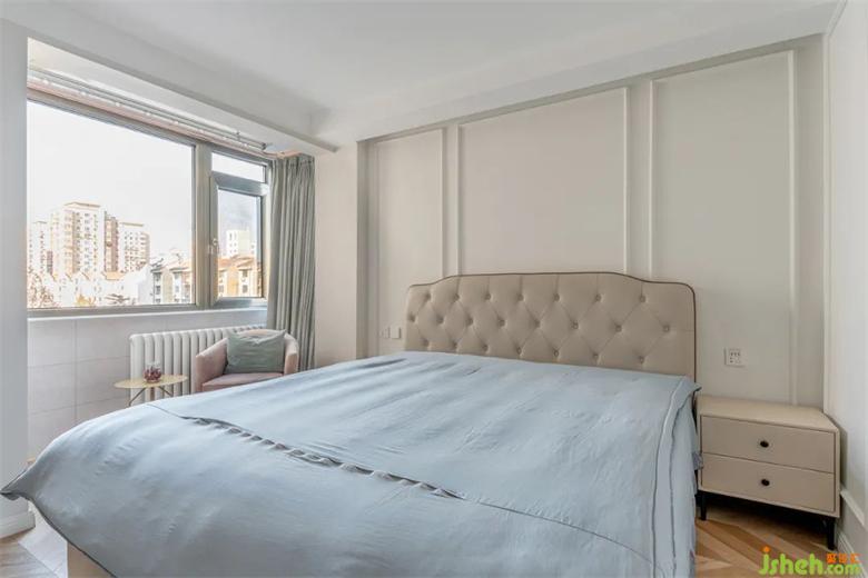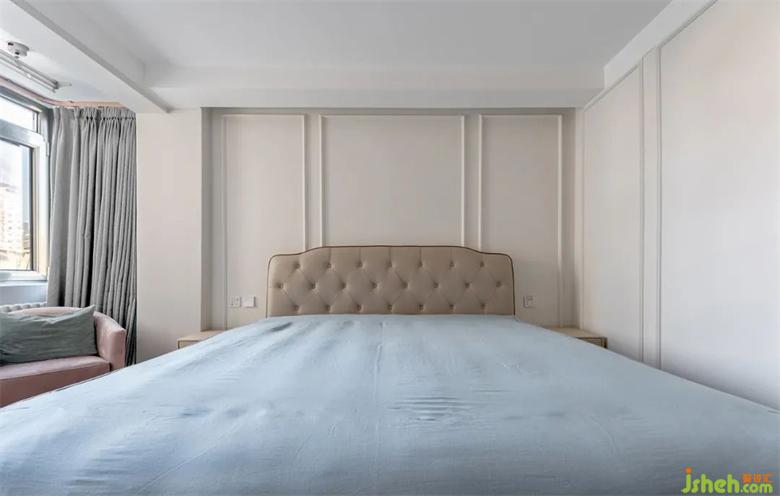 主臥的墻面選用了石膏線,既可以起到裝飾作用,也能增加墻面的層次感。配上軟包床,簡(jiǎn)單又舒適。
