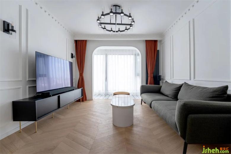 客廳陽(yáng)臺(tái)的埡口進(jìn)行了圓弧的處理,裝修淡化了直角帶來(lái)的生硬感,電視柜的高角設(shè)計(jì)更加方便衛(wèi)生的清理。