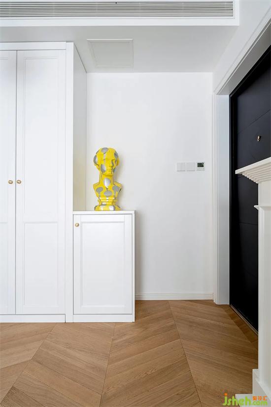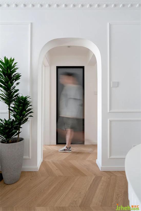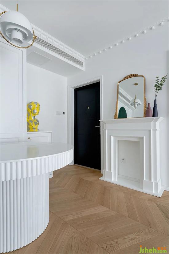 優(yōu)化后的玄關(guān)增加了大量?jī)?chǔ)物空間,純白色的壁爐+銅鏡,營(yíng)造法式獨(dú)有的裝修浪漫氛圍。