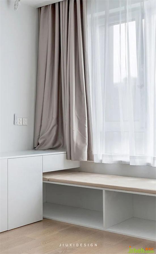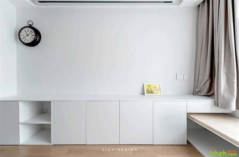 窗前裝修設(shè)計(jì)了與電視柜相嵌入的窗榻,承上啟下的交叉的結(jié)構(gòu),簡單又利落。在愜意的午后,也可以在窗榻下給孩子閱讀繪本。