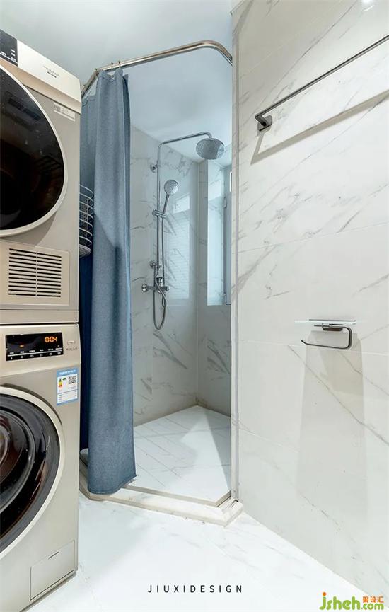 為了可以放下烘干機(jī)和更好的淋浴體驗,裝修設(shè)計把原有的太陽能熱水器舍棄,改成了燃?xì)鉄崴?。小小改動卻是屋主全家特別需要的功能,以后洗澡也不用邊洗邊觀察熱度容量了。