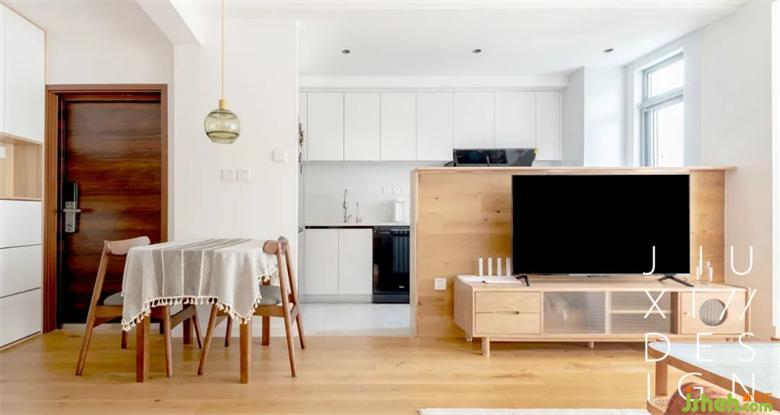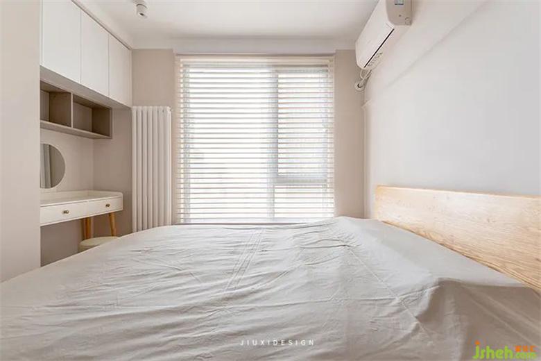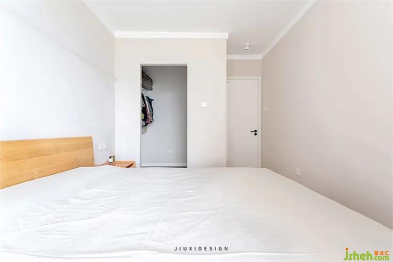 在臥室劃出一個(gè)衣帽間,來增加整體臥房的儲(chǔ)物。原木床體與外部的木色有了呼應(yīng),裝修讓家變得統(tǒng)一舒適。