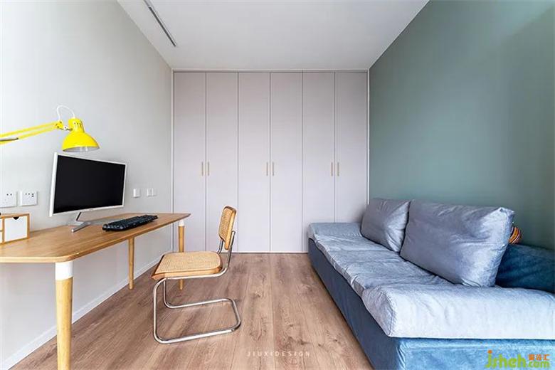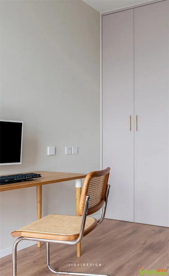 簡(jiǎn)單的一桌一椅,就是現(xiàn)代人的居家辦公和游戲的空間。室內(nèi)設(shè)計(jì)師旁邊預(yù)留了整排的通頂衣柜,也為以后的空間屬性變化,預(yù)留了不同的方式。