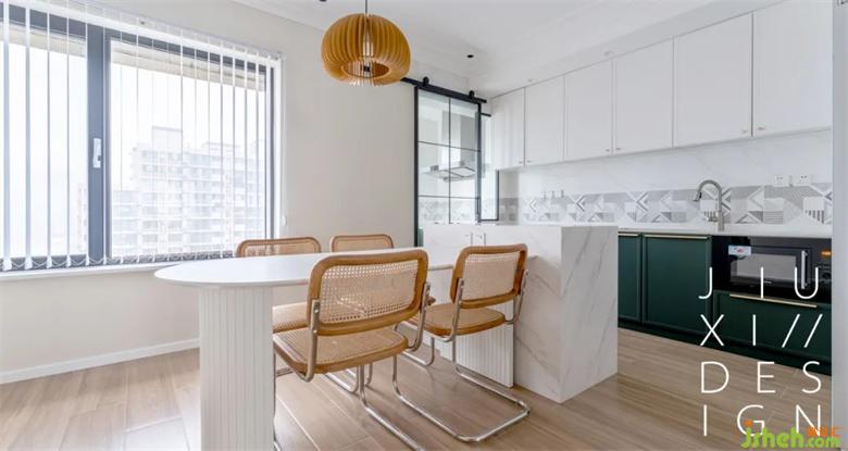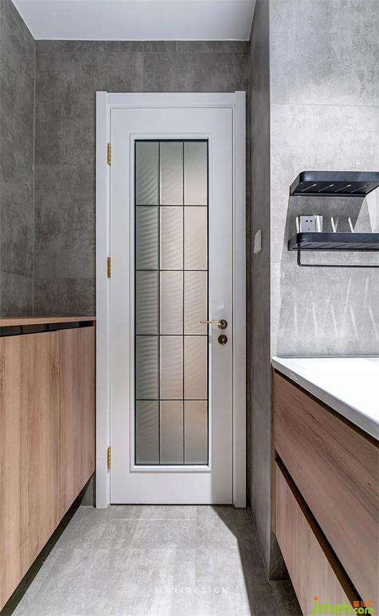 洗手池門后定制了一整排儲(chǔ)物柜,在不影響動(dòng)線和門開(kāi)合的前提下,可以最大限度的增加收納空間,也為囤物預(yù)留了場(chǎng)地。