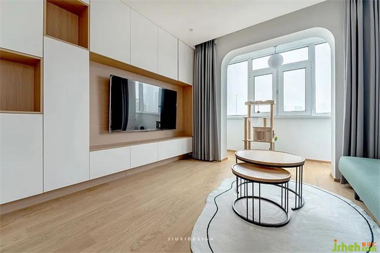 陽臺(tái)埡口一改原來的直棱直角,用圓弧來弱化棱角感,還原少女心的溫和。半高式的貓爬架,不影響室內(nèi)設(shè)計(jì)師觀景視線。