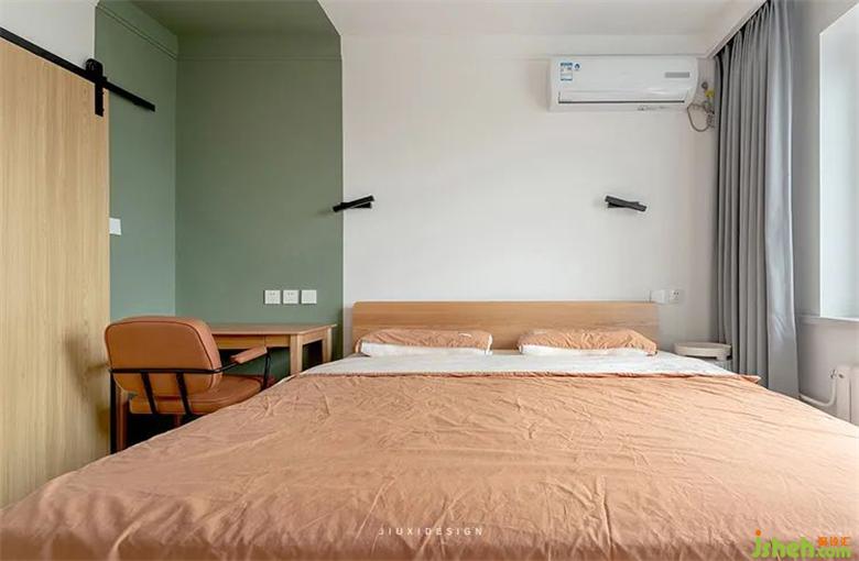 臥室利用色塊劃分了功能區(qū),室內(nèi)設(shè)計師增加空間趣味性。