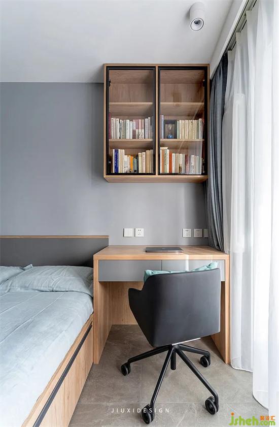 在這個(gè)量身打造的臥室里,預(yù)留了一張工作臺(tái),室內(nèi)設(shè)計(jì)是屋主學(xué)習(xí)和給學(xué)生上網(wǎng)課的地方,更是他的精神領(lǐng)域。