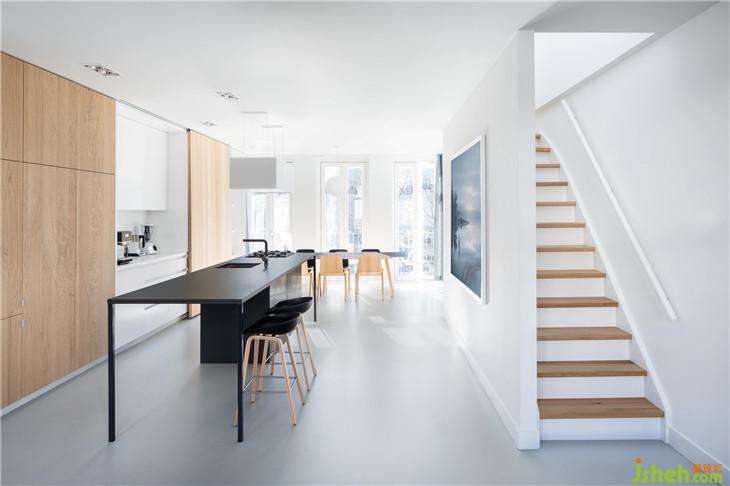 阿姆斯特丹曾經(jīng)是一個(gè)用來(lái)出租的房子,現(xiàn)在被改建成一個(gè)寬敞的閣樓。 內(nèi)部采用簡(jiǎn)單的橡木墻板材料,白色抹灰墻,黑色(內(nèi)置)家具和灰色鑄造地板。