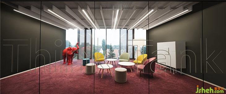 在AEB總部辦公樓,每一層都能找到促進(jìn)員工交流的公共休息區(qū)。它位于每層走廊的角落,靠近方形的中庭空間。在中庭懸垂的這些不同面積的陽(yáng)臺(tái),提供了不同材質(zhì)、顏色、形狀的休閑桌椅和沙發(fā),這些家具都是可以根據(jù)使用者的交流需求和景觀需求自由移動(dòng)的。相鄰的備餐間把這些區(qū)域變成了一個(gè)可進(jìn)行非正式會(huì)議和簡(jiǎn)短討論的交流區(qū),同時(shí)也在輔助這些功能。大膽的吊燈設(shè)計(jì)是每層陽(yáng)臺(tái)最引人注目的亮點(diǎn),作為連接每個(gè)樓層的重要垂直軸線,明亮的光線為整個(gè)空間添加了出人意料的詩(shī)意。偏小和隱蔽的陽(yáng)臺(tái),不同于其他開放式陽(yáng)臺(tái)交流區(qū),營(yíng)造一個(gè)‘前廳’的氛圍。其中的逍遙椅以及珍藏一些專業(yè)書籍的迷你圖書館,在辦公區(qū)創(chuàng)造了一個(gè)寧?kù)o又舒服的閱讀區(qū)域,讓其他員工工作不受任何干擾。