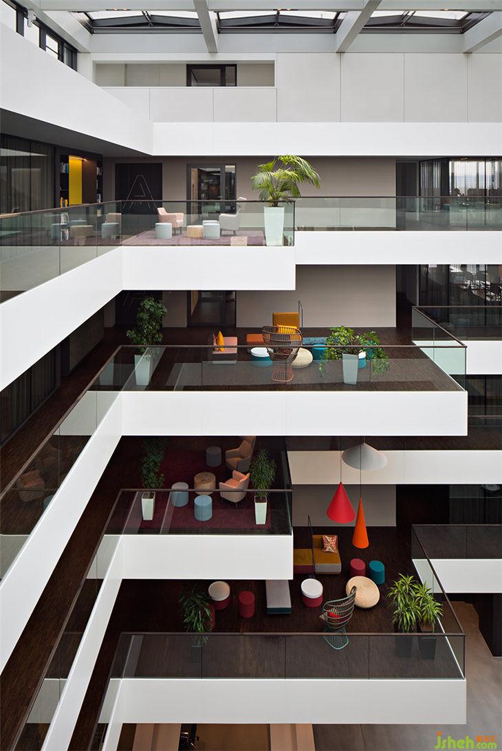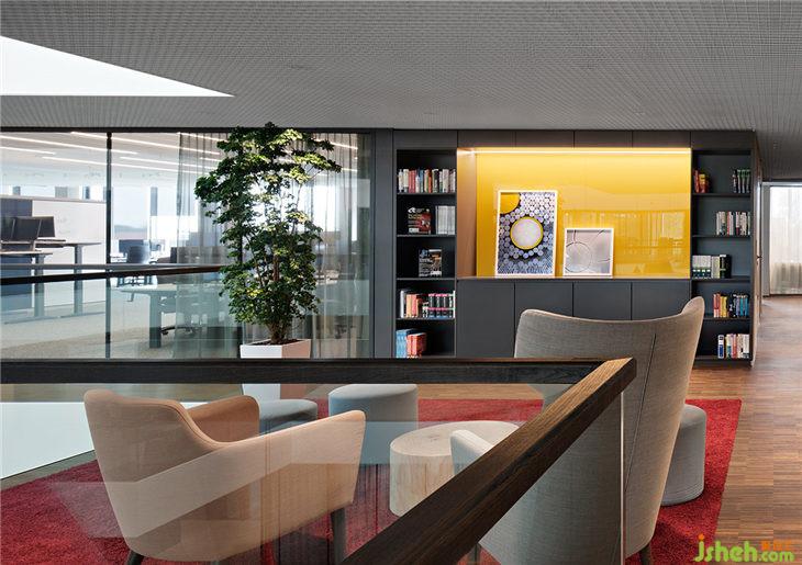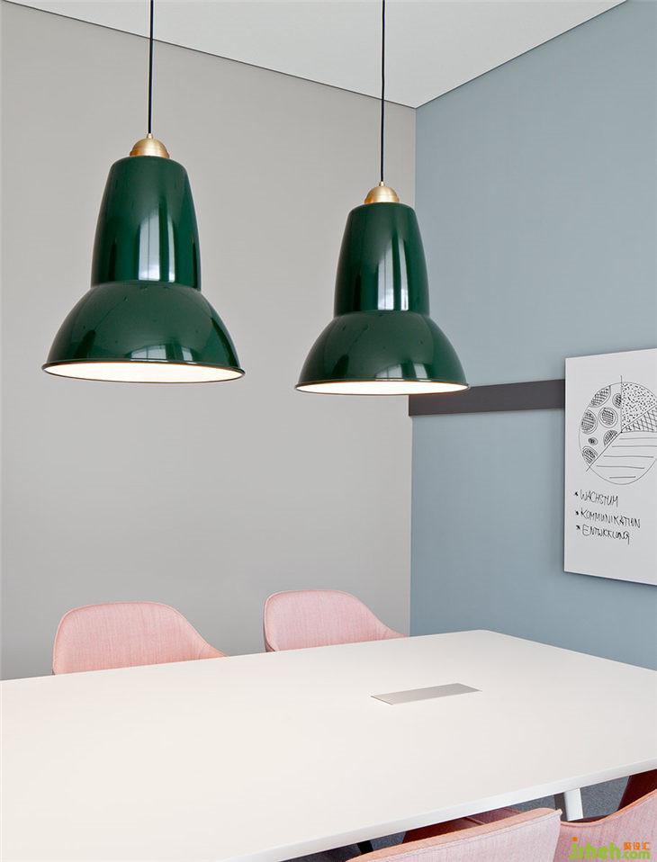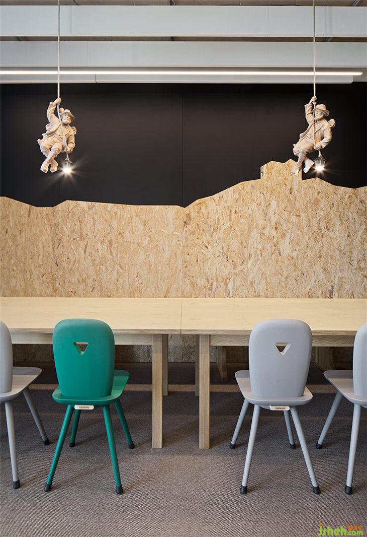 AEB總部每一層都有一個主題房間,這些可用于進行大型會議或進行更為深入的團隊工作。吧臺椅放置在松軟的地毯上,與落地燈和小櫥柜相結(jié)合,讓這間會議室轉(zhuǎn)變成‘思想起居室’。會議室中紅色的大象雕塑看似突兀,但它鼓勵參與者可以發(fā)揮充分地創(chuàng)意和想象。四層角落的長椅和復古風格的椅子等傳統(tǒng)家具在簡約又現(xiàn)代的裝修環(huán)境中創(chuàng)造了一個樸實但并不保守的工作氛圍。一個大型工作臺和裝飾吊頂與獨特設計的吊燈相結(jié)合,讓冰冷的會議室變成一個活躍的靈感源泉。旁邊的‘數(shù)字化實驗室’則是為科技愛好者提供的用來測試領(lǐng)先技術(shù)、進行研究、3D打印以及展示VR技術(shù)的場所。