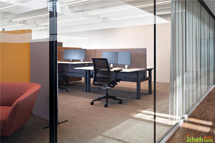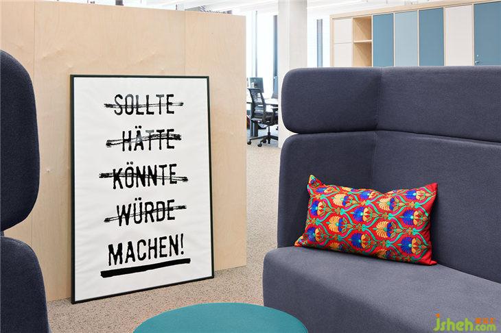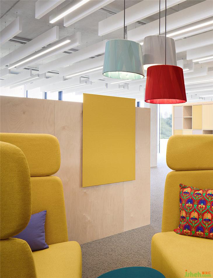 雖然所有員工的工作空間都是開放的,但他們在衣柜都擁有獨立的儲物箱可以放置個人物品。AEB的員工也可以根據(jù)個人喜好選擇不同工作區(qū)域:可調(diào)高度的工作臺、站立式工作臺以及可放置多臺電腦的常規(guī)辦公臺面。大型辦公室中的壁龕提供更私密的角落,幫助營造一個舒適的氛圍。斜對角的A和B辦公室被分配了黃色和藍色的主色調(diào),以便員工更快、更準確地找到方向。