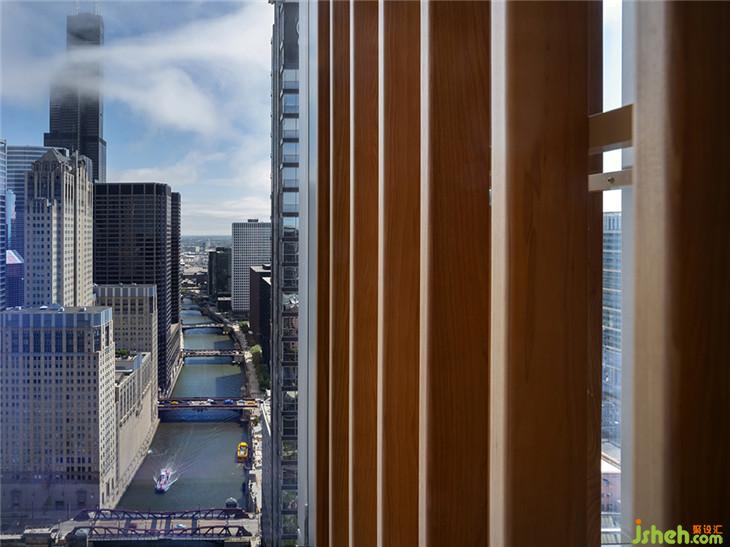 “從藍(lán)調(diào)的結(jié)構(gòu)來(lái)看,一種彌漫在芝加哥的音樂(lè)…”建筑師繼續(xù)說(shuō)道,“…我們采用了‘緊張和放松’的概念?!?.60米的天花板高度,對(duì)于一個(gè)辦公室來(lái)說(shuō)是絕對(duì)不尋常的,它允許我們交替使用懸挑的元素,比如織物面板,而雕塑元素則放在地板上,保持原有的高度。這種壓縮和懸浮的游戲在冬季花園的體量上達(dá)到了高潮:一個(gè)獨(dú)特的懸浮在城市空間中的空間,一個(gè)材料和觸覺(jué)的隔膜,包含了音樂(lè)、藝術(shù)和活動(dòng)的空間,以及冥想和閱讀的空間。”