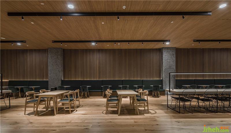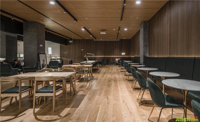 基于復(fù)合經(jīng)營的商業(yè)考量,圖書業(yè)態(tài)與其他消費(fèi)業(yè)態(tài)有機(jī)結(jié)合。低調(diào)置入的咖啡區(qū)提供了更休閑式的社交空間,墨綠點(diǎn)綴穿插在木色空間中,也成為跳動的個性隱喻。