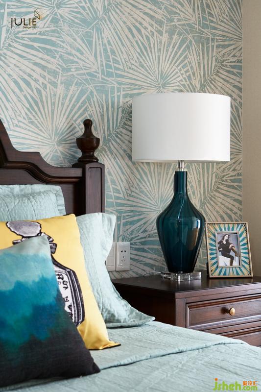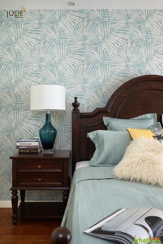 主臥—室內(nèi)設(shè)計(jì)師在個(gè)性壁紙的選配打破深色實(shí)木家具的沉重感,營(yíng)造出明亮、通透的空間層次。