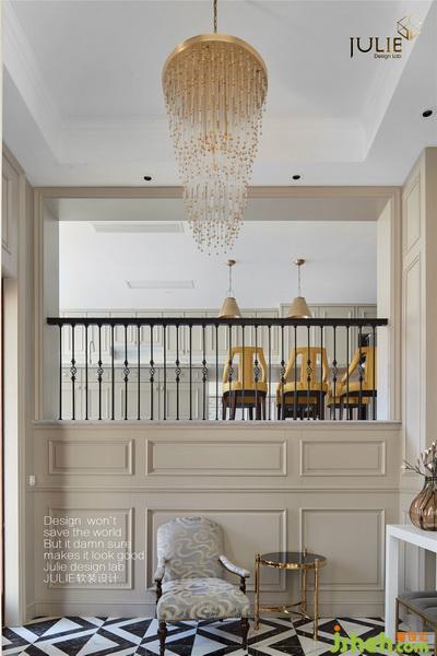 退卻冰冷的材質(zhì),尖銳的線條,米灰色整體木飾面溫馨舒適。專屬于玄關(guān)處的黑白拼接瓷磚,挑空結(jié)構(gòu)搭配精美的陳設(shè)與雨滴狀金屬吊燈,室內(nèi)設(shè)計師務(wù)求展現(xiàn)出一種追求精致,追求藝術(shù),追求美的生活態(tài)度。