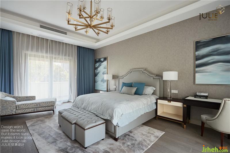 亞麻色的背景基調(diào),結(jié)合冷色系配飾點(diǎn)綴。營(yíng)造出一個(gè)靜謐的睡眠空間,精致的家具款式組合,整體空間優(yōu)雅大氣。