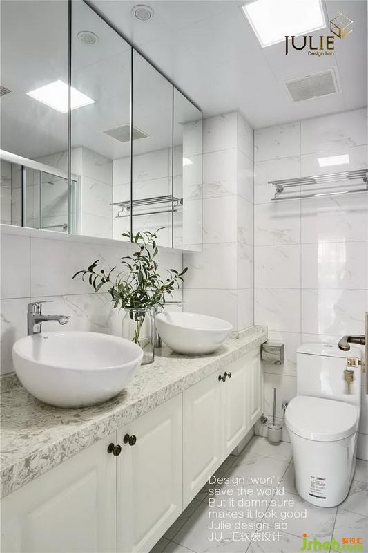 整體明朗清爽,簡約衛(wèi)浴柜鏡為空間增加儲物功能。