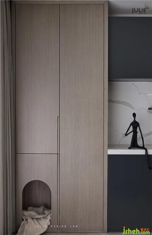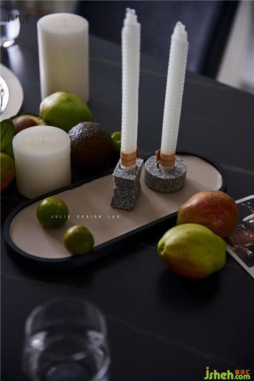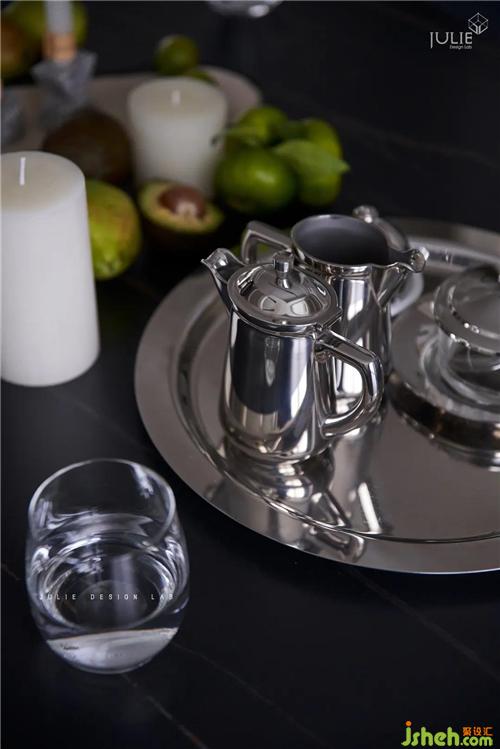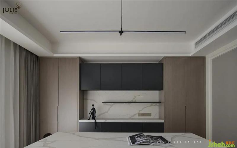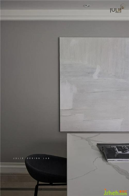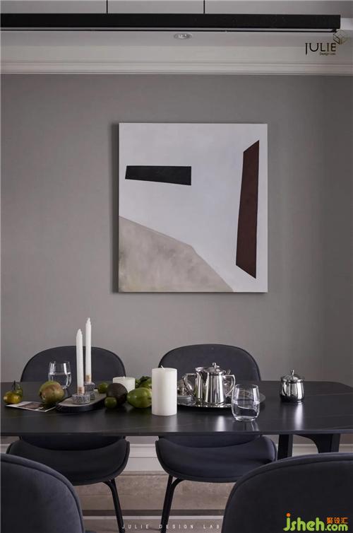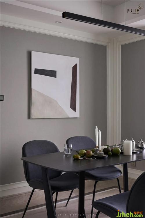 餐廳的色調(diào)也采用灰色系,點(diǎn)綴藍(lán)色在其中,簡(jiǎn)約的同時(shí)又不失大方,讓整個(gè)餐廳看起來干凈整潔,而且富有層次感。