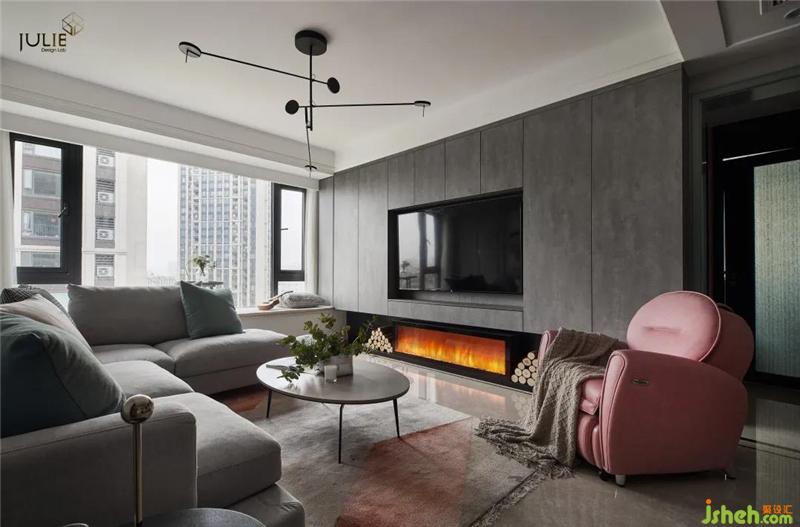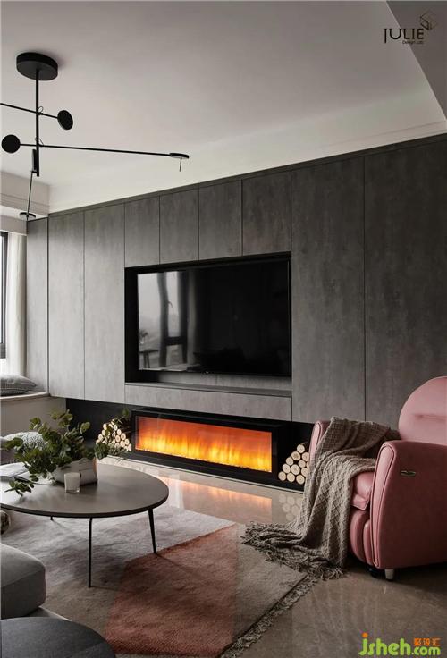 電視柜懸挑處的壁爐設計