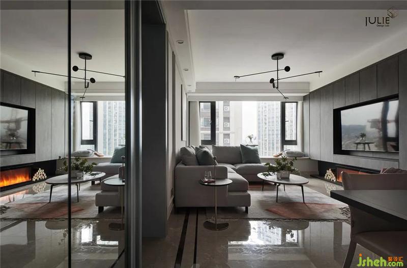 客廳以灰色押韻著整體風格
