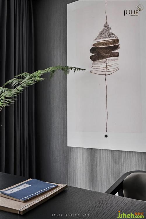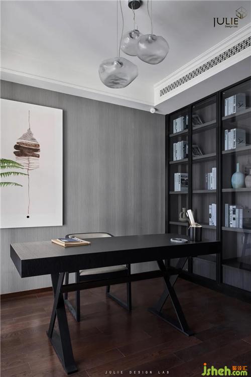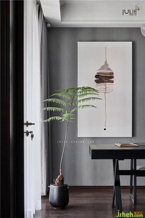 淡雅灰調(diào),暖光鋪韻,塵世繁華間隱匿著的寧靜祥和由畫及室。不取繁飾,別墅裝飾空間布局和陳設(shè)都極盡簡約,一桌、一椅、一方書架,只取綠植為麗景,誠如《書齋說》所言:書齋宜明朗、清凈,不可太寬敞。