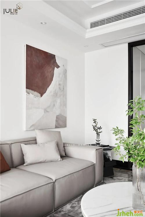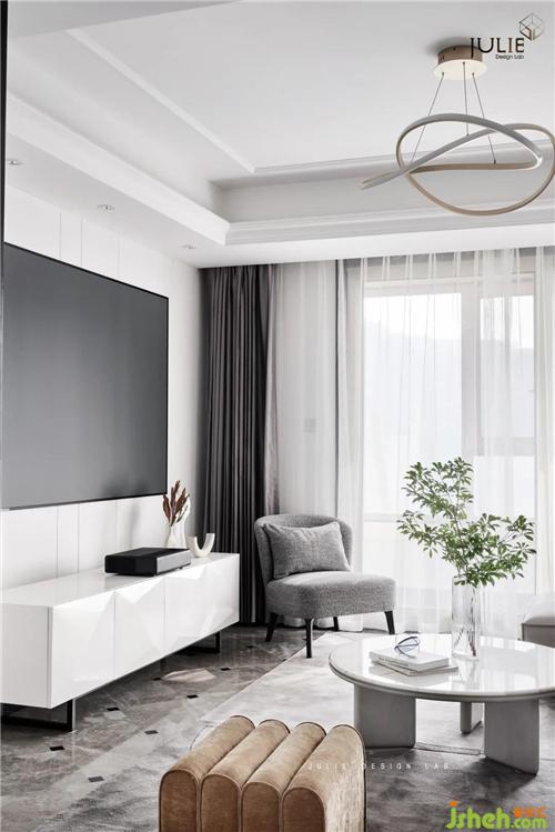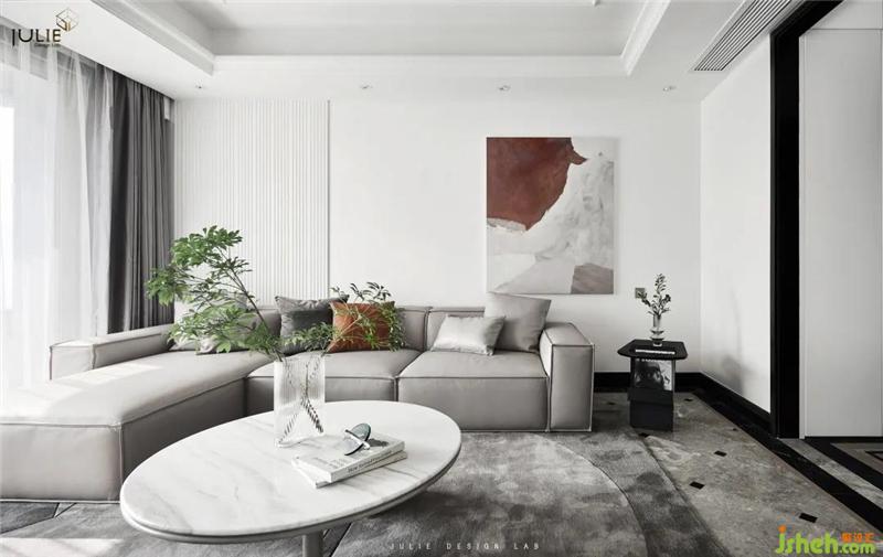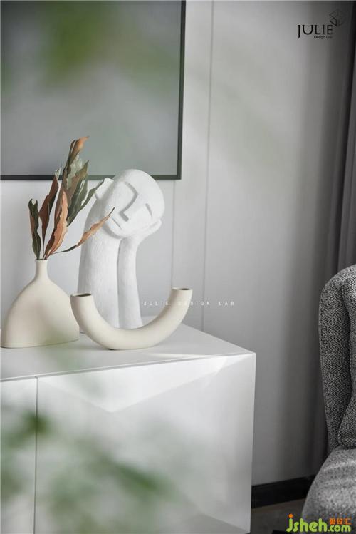 Enter the living room, surrounded by white and light gray, dotted with some light gray and bright interior, the outline of all objects is clear, giving people a natural visual enjoyment.