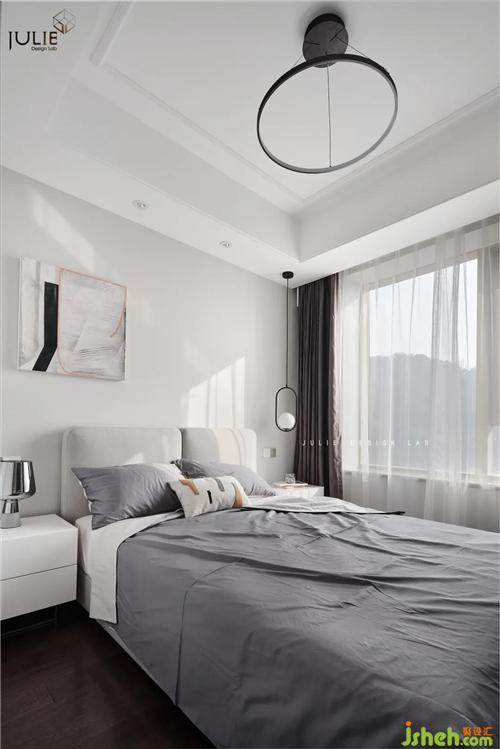 The soul of passion and freedom is eager to live in the peaceful harbor at night. The tonality of the second bedroom is bright and delicate. White and gray make people comfortable and warm in the sunlight, creating a kind of indoor and outdoor life balance.
