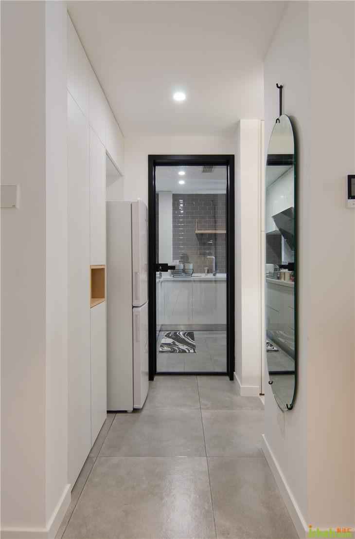 1.將原有廚房的一部分面積分離出來,作為入戶衣帽區(qū),承擔了玄關(guān)的收納與換鞋功能,并預(yù)留了冰箱的位置。