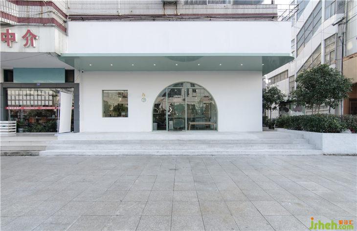 很多臨街老建筑的形式均為底層商鋪內(nèi)縮的形式,上方住宅陽(yáng)臺(tái)自然形成首層雨棚,因此也給立面處理帶來了難題。如何能讓兩個(gè)錯(cuò)位的體塊在視覺上形成統(tǒng)一卻不顯突兀是我們要考慮的主要問題。最后我們?cè)O(shè)計(jì)了一個(gè)輕薄的屋檐,從色彩上與室內(nèi)外空間形成聯(lián)系,從形式上消解了上部陽(yáng)臺(tái)造成的視覺壓抑,也恰當(dāng)?shù)倪^渡了上下不平帶來的視覺差。