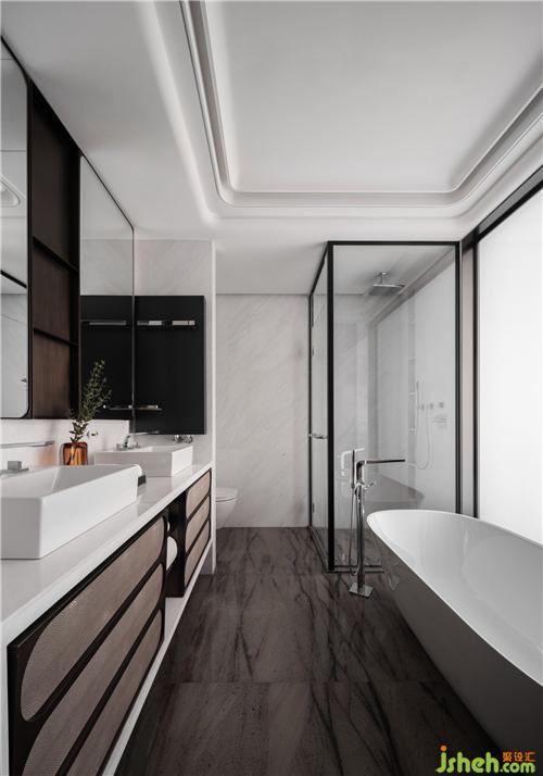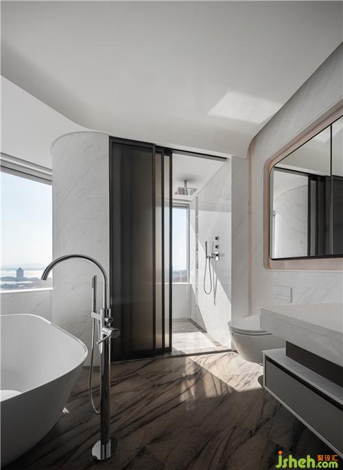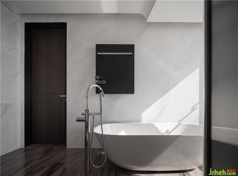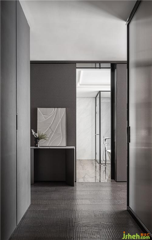 玄關(guān)處設(shè)計(jì)了集浴室與化妝間為一體的空間,面向整個(gè)公共區(qū)開(kāi)放,為家人與朋友提供便捷。同時(shí)為了兌現(xiàn)精致生活的每處細(xì)節(jié),設(shè)計(jì)中采用了瑞族、勞斯、西曼帝克等家裝品牌,讓空間儼然成為一件經(jīng)得起時(shí)間考驗(yàn)的“可居住藝術(shù)品”,在城市中為居住者的心靈創(chuàng)造一個(gè)休憩之所。