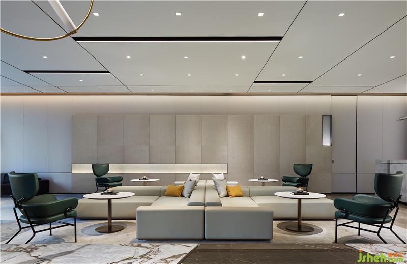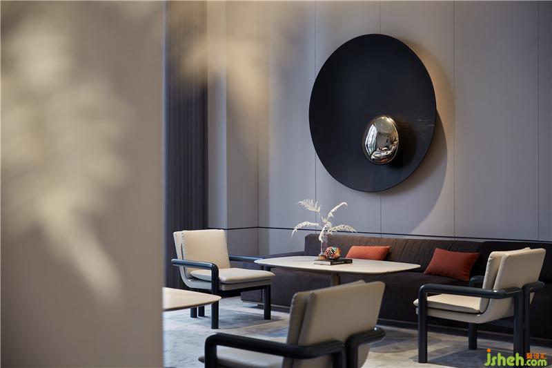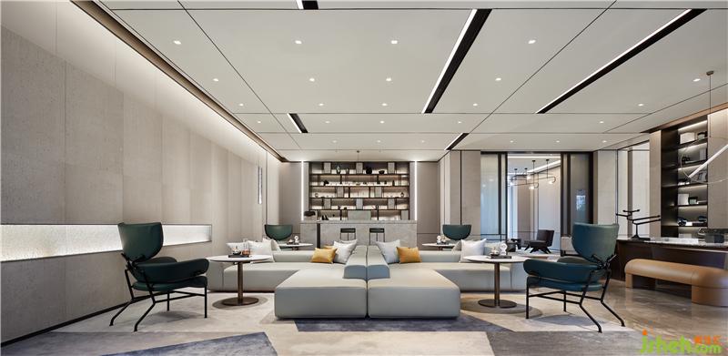 這樣的比例很像中式卷軸的比例,以墨色鋪陳,垂掛在空間中多個(gè)意想不到的角落,寧波售樓處設(shè)計(jì)有中式的趣味,也有豐富的空間秩序。這種空間一致性的比例,體現(xiàn)其友善和穩(wěn)定性。