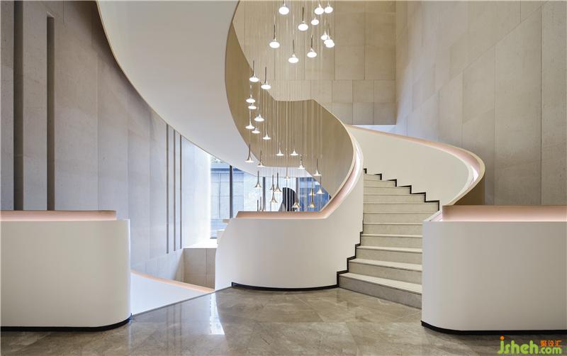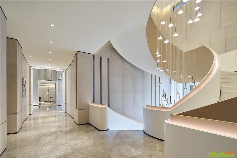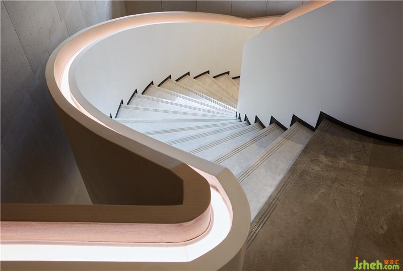 貫穿樓層的弧形旋梯,在室內(nèi)扮演了一個多層次的微型雕塑,它是從室外看向室內(nèi)的“襯底”,是連接上下空間的主角,也是步移景異時所藏的風(fēng)景。