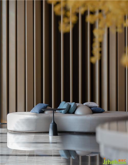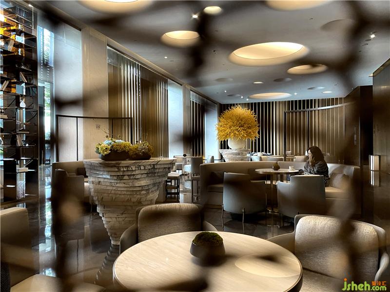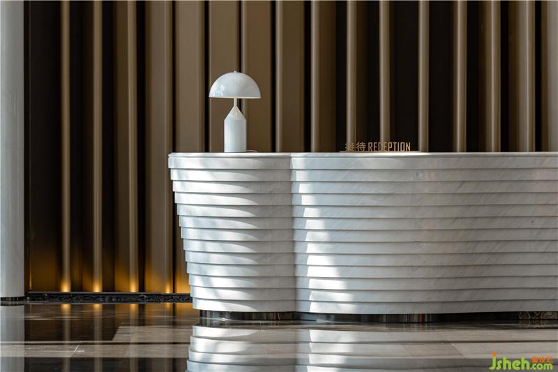 The hotel space follows the traditional philosophy that circle is dynamic and square is static. The space environment pursues the realm of "harmony between man and nature". All the exquisite and ingenious designs are for the perfect combination of man and environment, so that the guests can feel the tranquility of life in the artistic aesthetics, stay away from the hustle and bustle, empty themselves here, and enjoy the harmonious beauty infinitely. The theme of the hotel is water. The artistic conception of water, the background of water shadow, water drop, water bubble and undulating waves form a deep emotional connection with the guests. The theme of the hotel is water. The artistic conception of water, the background of water shadows, water droplets, blisters, and undulating water waves form a deep emotional connection with the guests. In terms of color, it follows the logic of "black is water" in the traditional five elements culture, refuses superficial decoration and does not cater to the trend. Through the main materials of Jazz white stone, royal brown stone, ancient copper plate, ancient copper wire drawing, crystal, designers created a water story.