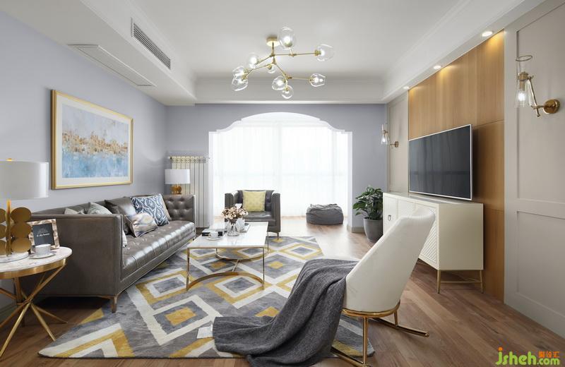客廳的光線非常明亮,視野也很開闊,這是客廳和陽臺打通融為一體的好處。拱形門洞的造型做了一些優(yōu)化,增添了浪漫的氣息。三種色彩組合而成的地毯,也給家里帶來了溫馨感。