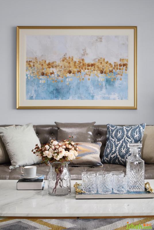 金色邊框的掛畫已經(jīng)有了奢華的概念,畫的內(nèi)容并不需要太過復(fù)雜,三種色彩勾勒出的簡單圖案完全起了點綴的作用。