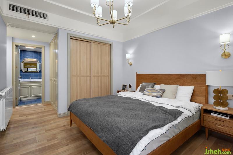 主臥室內(nèi)設(shè)計師根據(jù)屋主的喜好,選購的原木家具,質(zhì)樸貼近自然的感覺。地面是原木色寬窄拼的地板,深淺變化和整體搭配起來很和諧。