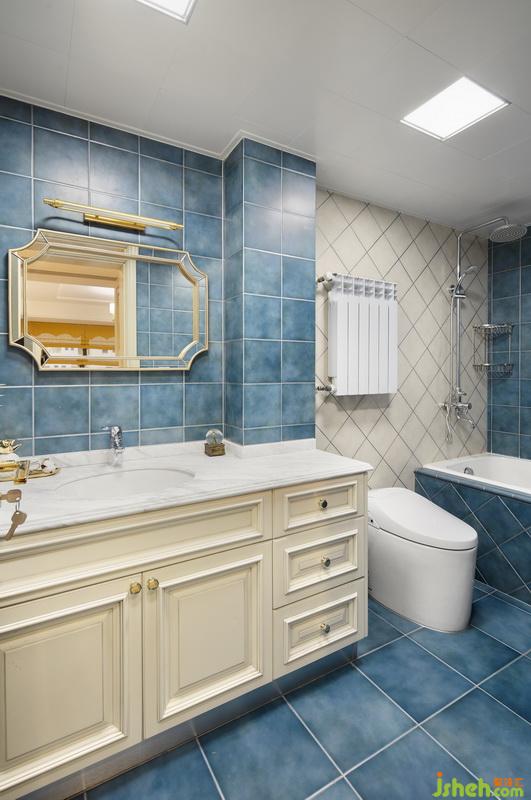 主衛(wèi)搭配了水藍(lán)色和米色的仿古磚,通過鋪法的改變帶來一絲幽靜的感覺。