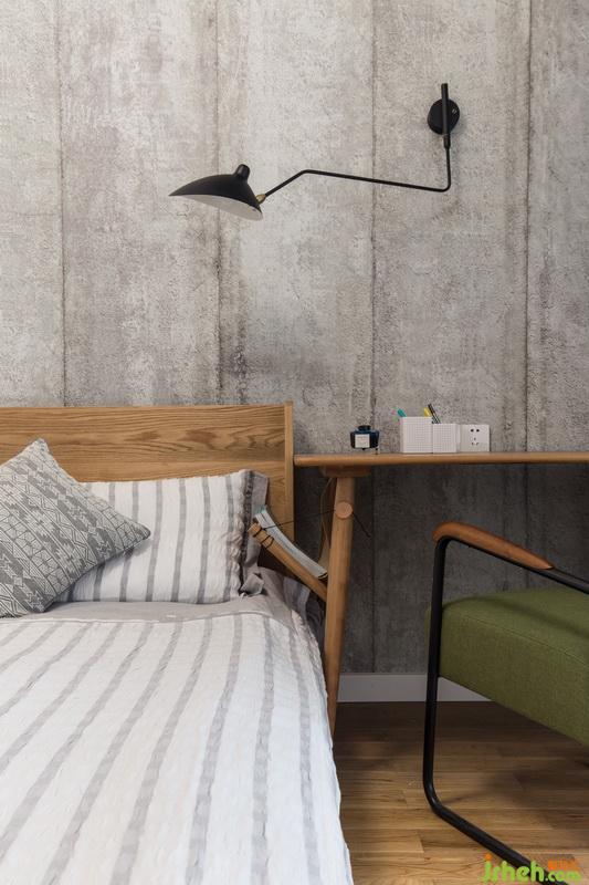 室內(nèi)設(shè)計師使用精致小巧的灰色壁燈,使背景墻融為一體。