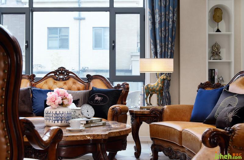 一樽“鞍上留明月,嘶間動(dòng)朔月”的青銅馬,雪色縹沫香的素瓷,把客廳打造成古色古香的雅室。壁上的中國(guó)畫,獨(dú)特的美式雕刻家具,隨處可見的素瓷,真真是“風(fēng)回小院庭蕪綠,柳眼春相續(xù)”。