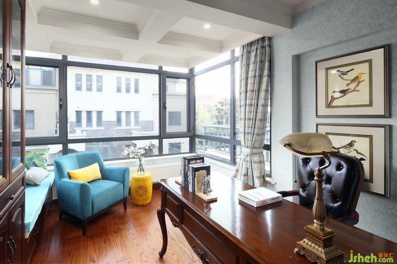 書房通透性很高,吊頂增加了空間感,沙發(fā)與鼓凳的跳色,為沉靜的書房帶來了舒緩閑逸,閑暇時(shí)泡一壺清茶,執(zhí)一縷墨香,聆聽陌上花開的聲音。室內(nèi)設(shè)計(jì)師