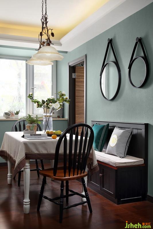 室內(nèi)設(shè)計(jì)師在餐廳的卡座設(shè)計(jì)不僅增加了美觀,也增加了收納空間