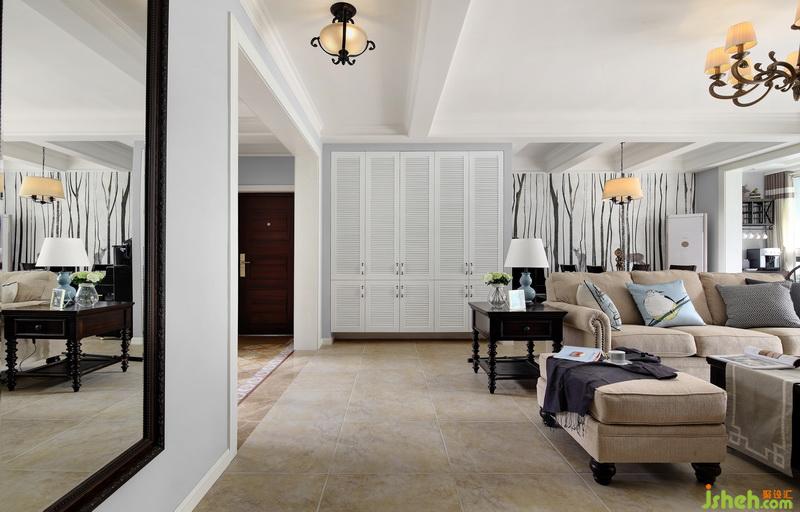這是步入家中的首個角度,簡美式的風(fēng)格色彩溫馨而美好,讓人不禁想進(jìn)入室內(nèi)一探究竟。