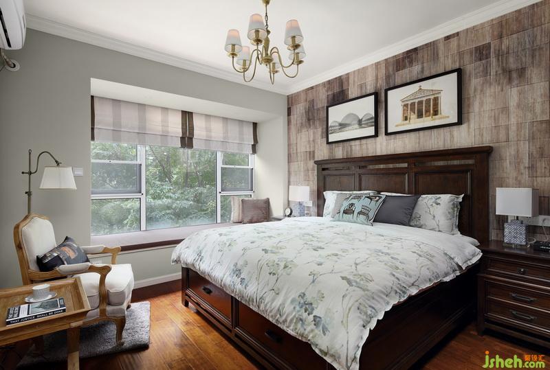 床頭背景墻紙同樣是定制的,與實木家具的色彩相呼應(yīng),畫、床品、抱枕、臺燈等軟裝都是設(shè)計師精心挑選,力求做到盡善盡美。