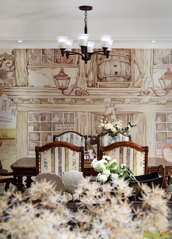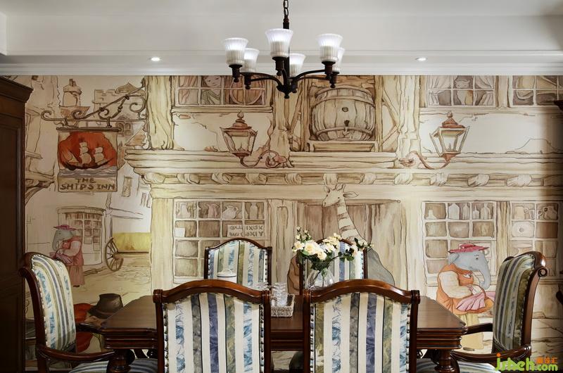 定制的餐廳墻紙滿足了一家人的童趣,在這樣的環(huán)境下用餐,心情都會(huì)輕松愉快許多。